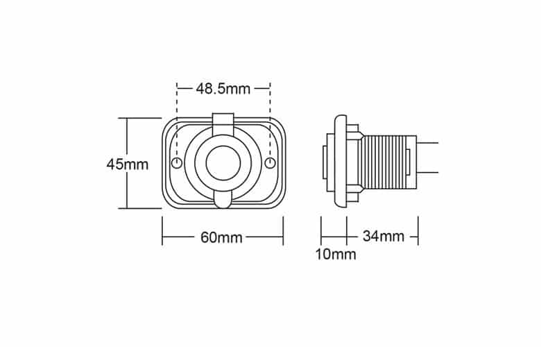 Flush mount heavy duty engel type socket. Suitable for interior or exterior fitment. Socket is protected with dustproof rubber covers. Can be installed with or without the mounting panel.