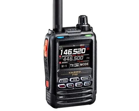 Plus advanced features of the new FT5DR/E are: Wireless hands-free operation using the optional Bluetooth® headset (SSM-BT10); VOX function; Memory Auto Grouping (MAG); VFO Band Skip Function; Wide-range RX coverage with continuous reception from 0.5MHz–999.99MHz (A Band) & 108MHz–580MHz (B Band); Built-in high-sensitivity 66 channel GPS receiver; 1200/9600bps APRS Data modem; 2,200mAh High-Capacity Li-ion Battery Pack (SBR-14LI) as